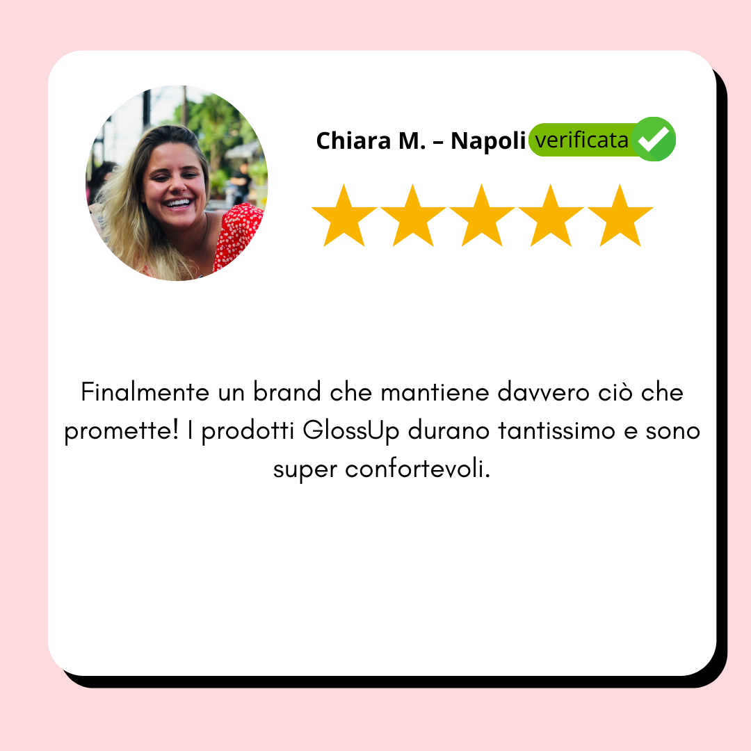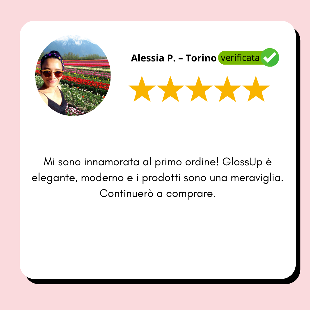 Sì, GlossUp è resistente all’acqua e al trasferimento, ideale per tutta la giornata.