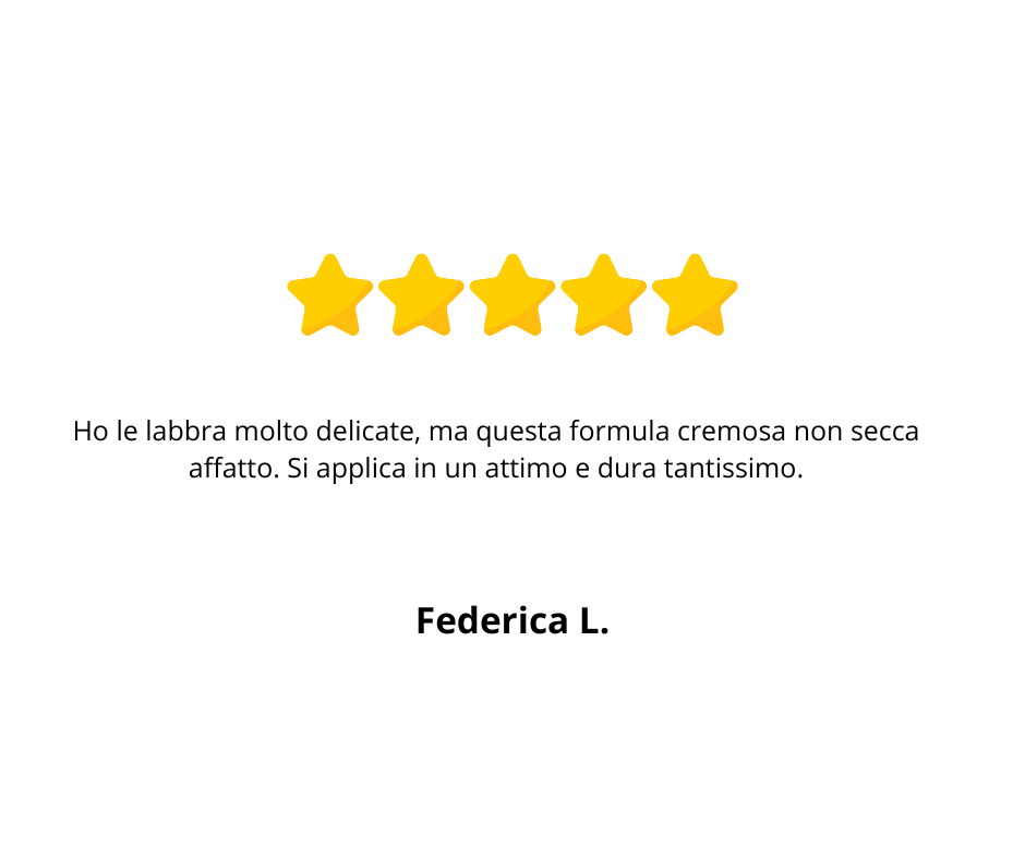 scorre delicatamente sulle labbra, garantendo un'applicazione uniforme e confortevole ad ogni passata.