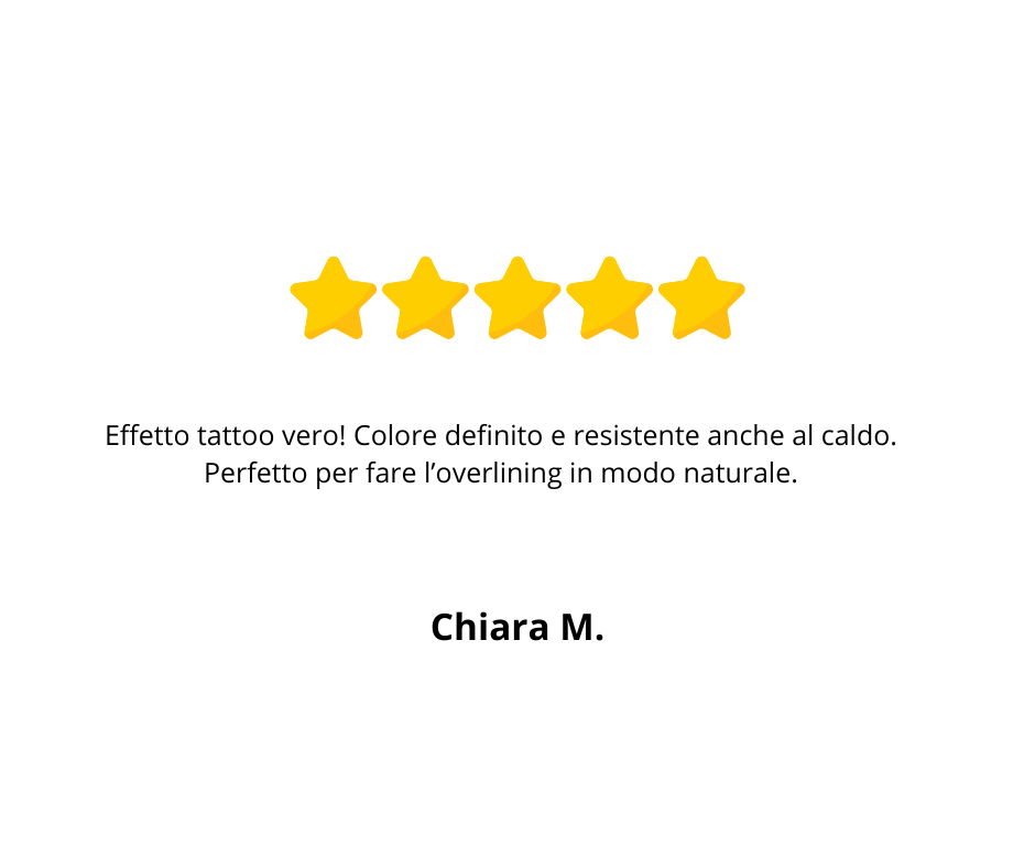 La formula effetto tatuaggio assicura una tenuta fino a 12 ore, senza ritocchi e senza sbavature.