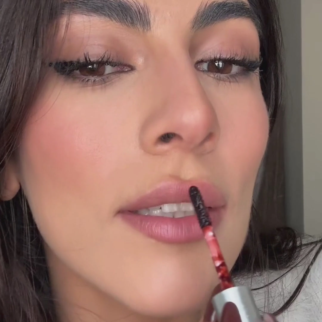 - Applica il Lip Liner™: utilizza il pennellino per disegnare con precisione il contorno labbra, poi riempi la parte interna per un effetto pieno e omogeneo.